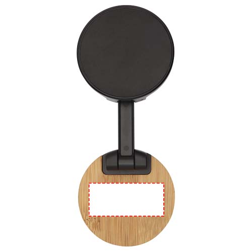 Runder mit Bambus beschichteter Handyhalter aus Kunststoff, mit selbstklebendem Sockel.