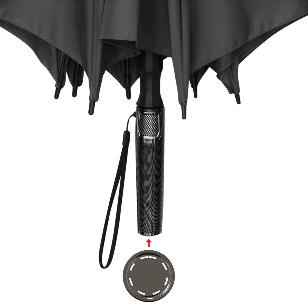 Automatik-Stockschirm BLIZZARD: Fiberglasstock, Fiberglasspeichen und Kunststofftips, Kunststoff-Griff in Carbon-Optik mit integrierter Automatik-Auslösetaste und Handschlaufe, hochwertige Polyester-Pongee-Bespannung, Schließband mit Druckknopf
