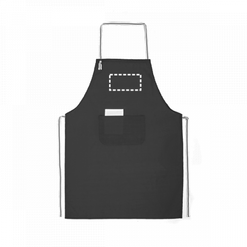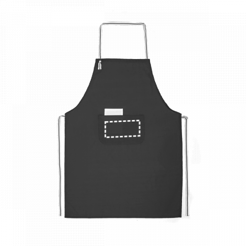Schürze aus Baumwolle (10%) und Polyester (150 g/m²) mit einem verstellbarem Nackenband und zwei Vordertaschen. 650 x 900 mm | Innentasche: 80 x 140 mm | Außentasche: 250 x 160 mm