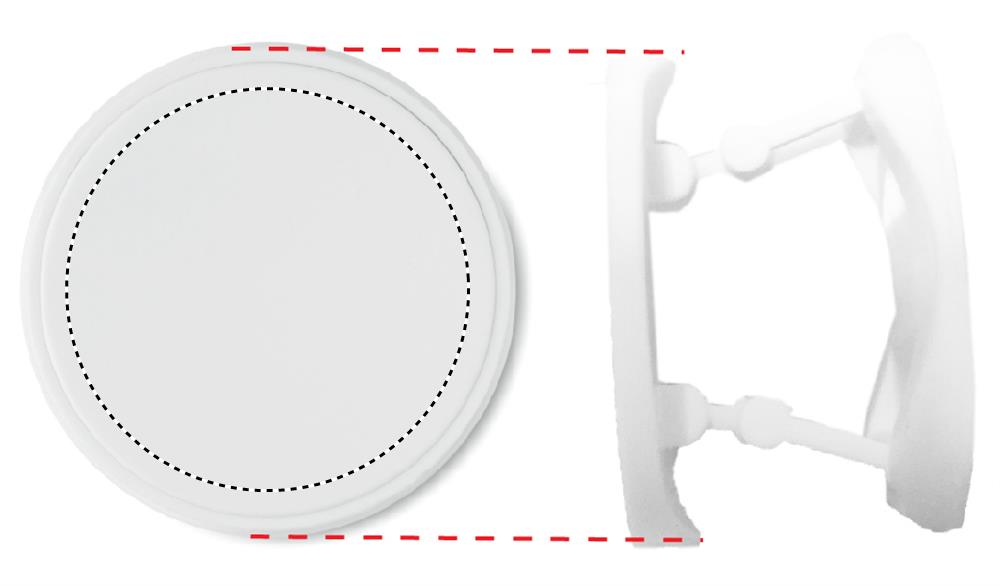 Rundes, faltbares Telefonzubehör aus ABS mit zwei Funktionen: Telefonständer und Halterung. Auf der Rückseite befindet sich ein 3M- Aufkleber.