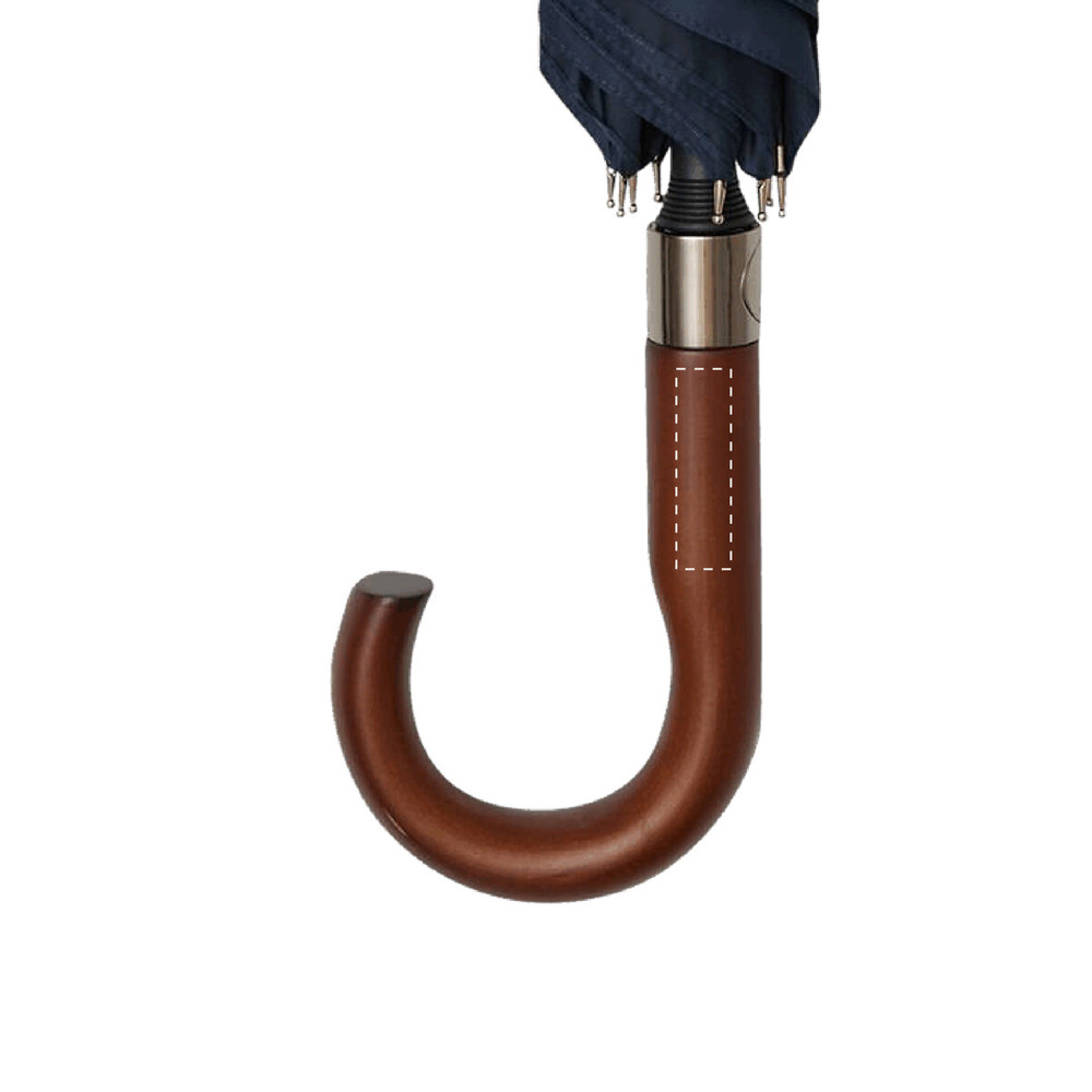 Automatik-Stockschirm mit Echtholzstock und Echtholzgriff Komfortable Automatik-Funktion zum schnellen Öffnen, Windproof-System für höhere Gestell-Flexibilität und bessere Windsicherheit, flexible Fiberglasschienen, massiver Echtholzstock, Rundhakengriff und Top aus Echtholz