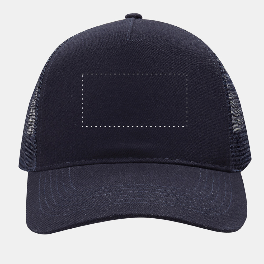 5-Panel-Baseball-Cap FASTBALL: verstärktes Frontsegment aus gebürsteter Baumwolle, übrige Segmente aus Netzstoff, Knopf, größenverstellbarer, doppelreihiger Kunststoffverschluss am Hinterkopf