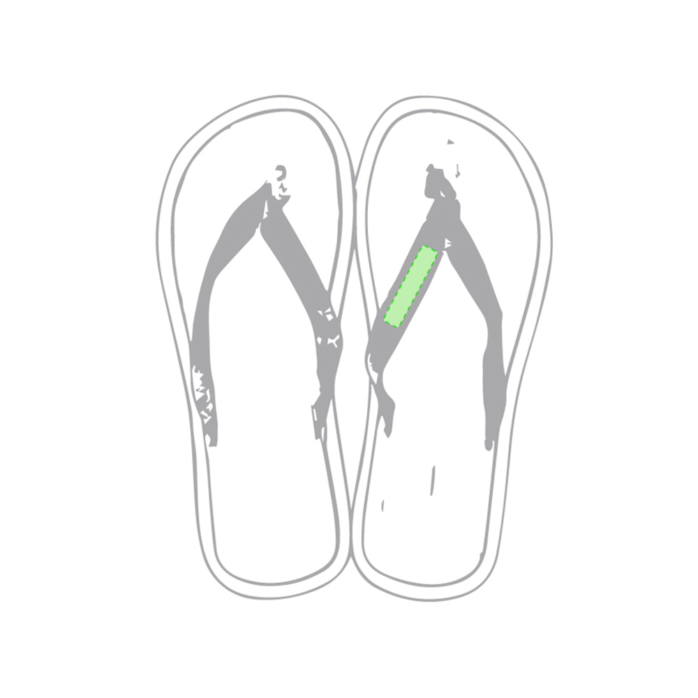 Paar Flip-Flops mit 100 % anpassbarer Sohle und speziell für den Sublimationsdruck konzipiert. Mit widerstandsfähiger EVA-Sohle, schwarzen PVC-Riemen und in zwei Größen erhältlich: 36-38 und 42-44. Set inklusive gestanztem EVA-Panel zur individuellen Gestaltung.