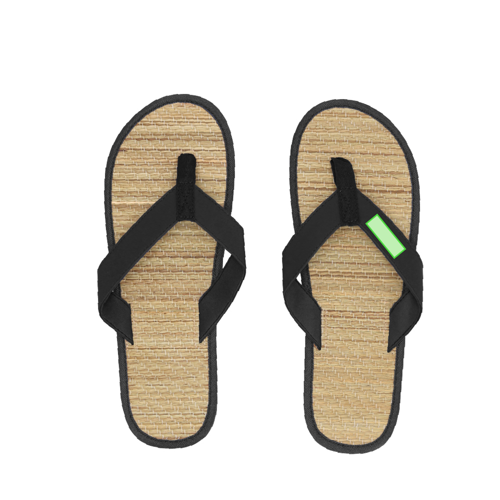Paar Flip-Flops mit 100 % anpassbarer Sohle und speziell für den Sublimationsdruck konzipiert. Mit widerstandsfähiger EVA-Sohle, schwarzen PVC-Riemen und in zwei Größen erhältlich: 36-38 und 42-44. Set inklusive gestanztem EVA-Panel zur individuellen Gestaltung.
