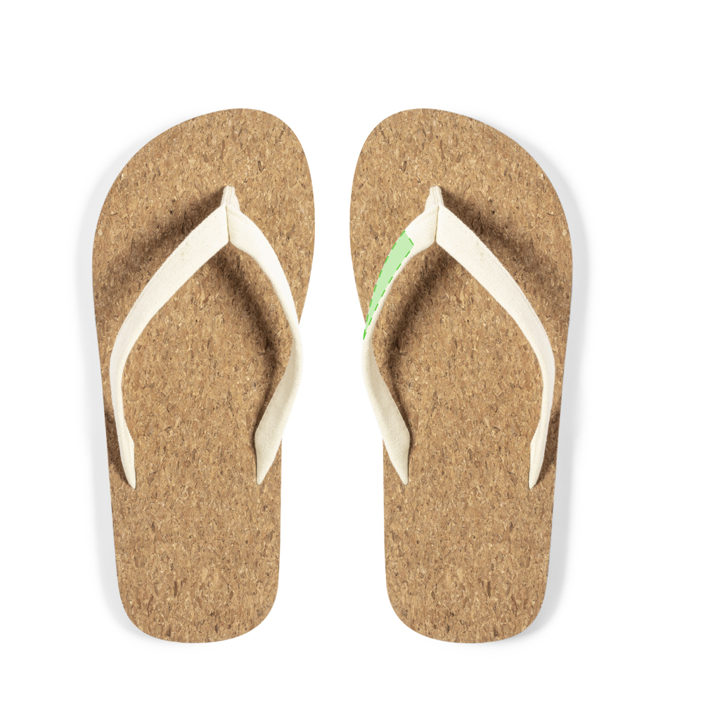 Paar Flip-Flops mit exklusivem Design in limitierter Auflage. Obersohle aus Naturkork, mit Riemen in Naturfarbe passend zur Sohle. Erhältlich in den Größen 36-38 und 42-44. Präsentiert in einer Limited Edition Experience-Hülle mit einzigartigem Design und geschützt durch gewerbliche Schutzrechte. Karte aus recyceltem Karton mit Beschreibung der Limited Edition. Aus der perfekten Kombination aus Exklusivität und Design entsteht die Limited Edition, eine besondere Kollektion limitierter Werbeideen. Ein neues Konzept, inspiriert von der Verschmelzung hochwertiger Artikel mit den neuesten Trends in limitierten Auflagen und bietet ein einzigartiges, exklusives und unvergessliches Geschenkerlebnis.