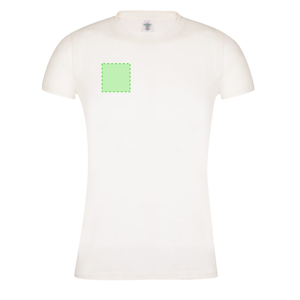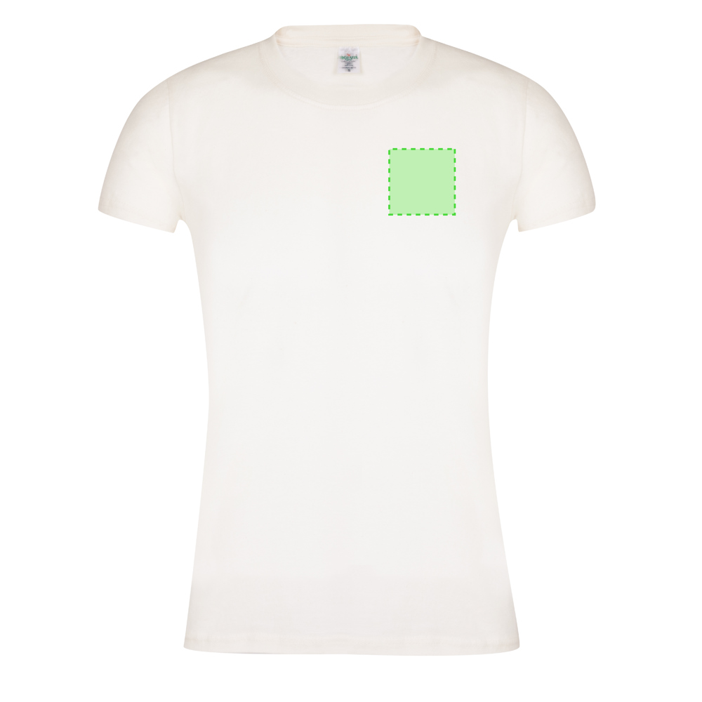Damen-T-Shirt Keya Organic Natural. Aus 100% Bio-Baumwolle, Single-Jersey-Material 150g/m2, mit natürlichem Finish. Bio-Emblem auf dem Etikett. Erhältlich in den Größen S,M,L,XL,XXL.