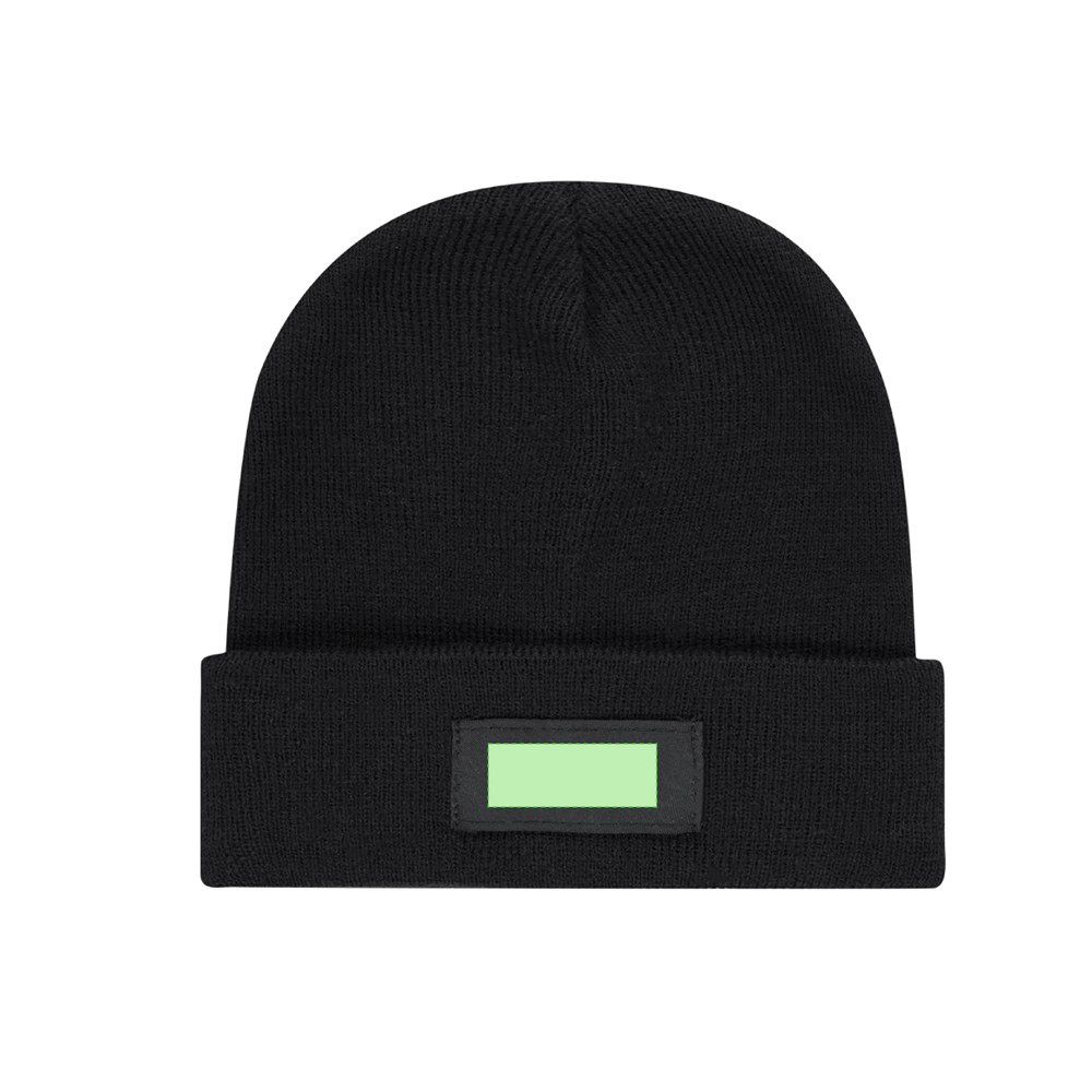Weiche und warme Kinderhut aus Acrylmaterial. Elastisch und leicht anzupassen, mit passendem Saum und vorderem Etikett für Branding.
