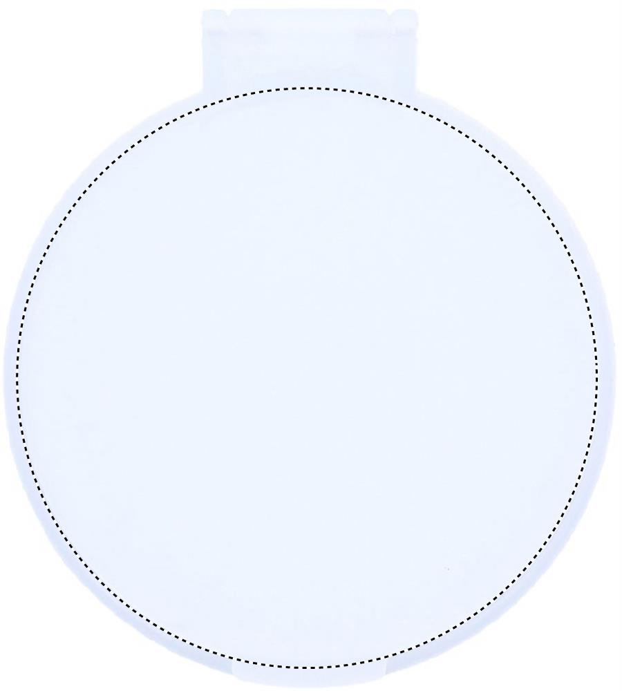 Faltbarer metallischer Spiegel mit Sublimationsfläche (nicht im Produkt integriert, ideal zum Drucken und späteren Aufkleben). Mit zwei Innenspiegeln: 1X und 2X-Vergrößerung.