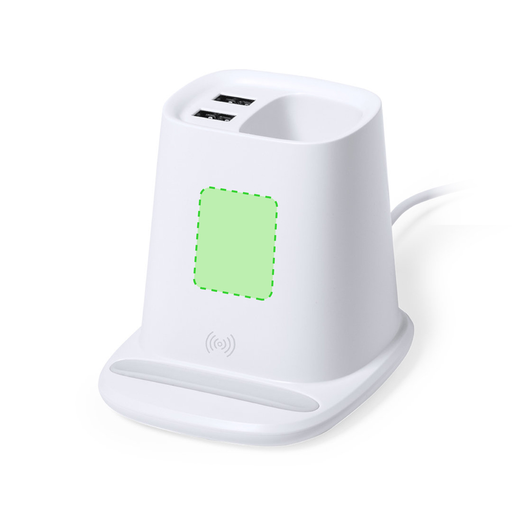 4 in 1 - Multifunktionsstift, aus strapazierfähigem ABS-Material in Weiß.Mit Stiftfunktionen, Smartphone-Halterung, kabellosem 5-W-Ladegerät und 2 USB-2.000-mA-Ausgängen. Unterer USB-Anschluss, geeignet für die Datenübertragung. Kompatibel mit Smartphones mit kabelloser Ladetechnik. Inklusive 1 Meter langem Typ-C-Kabel und in attraktiver Designerbox. Gebrauchsanweisung in Englisch und Spanisch verfügbar.