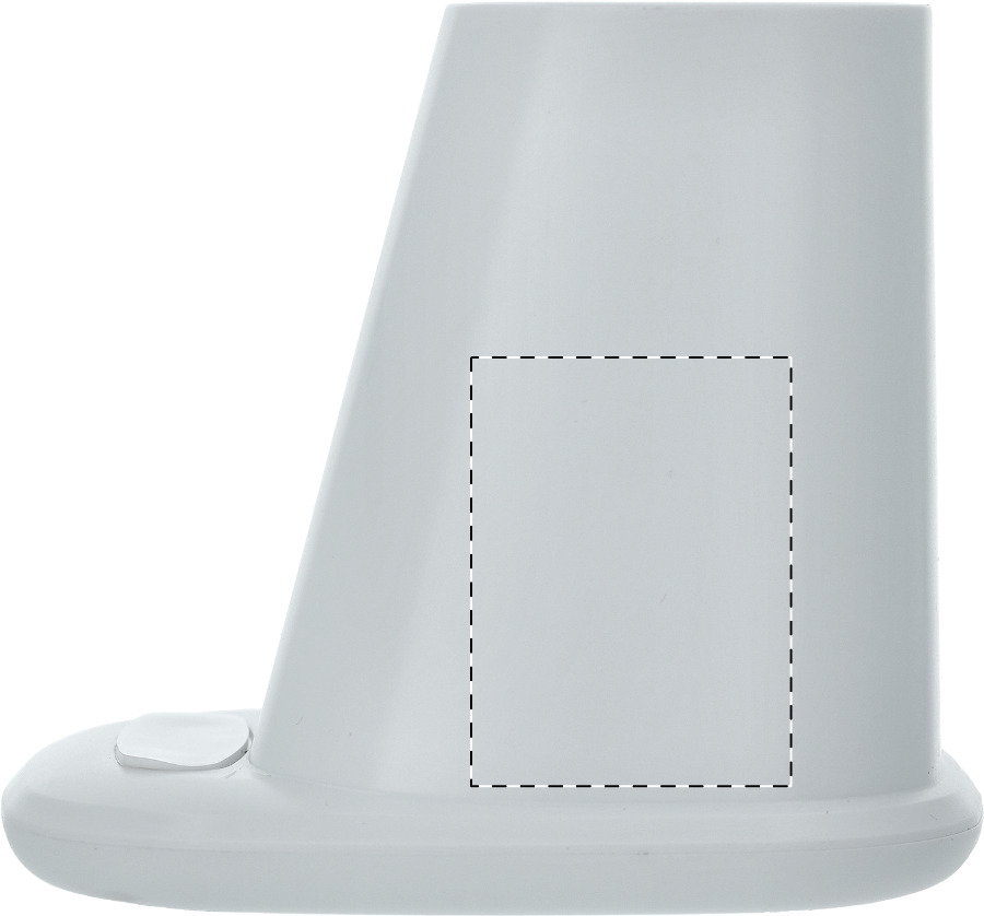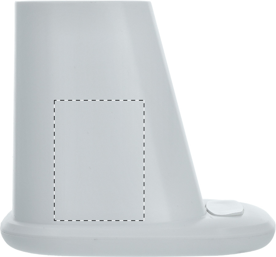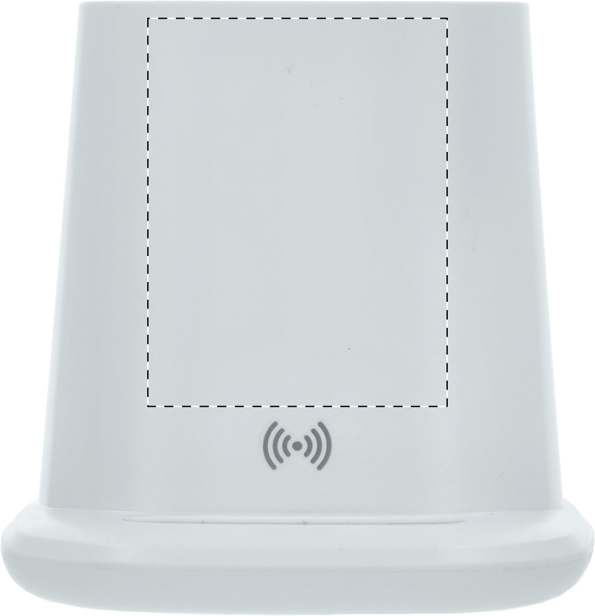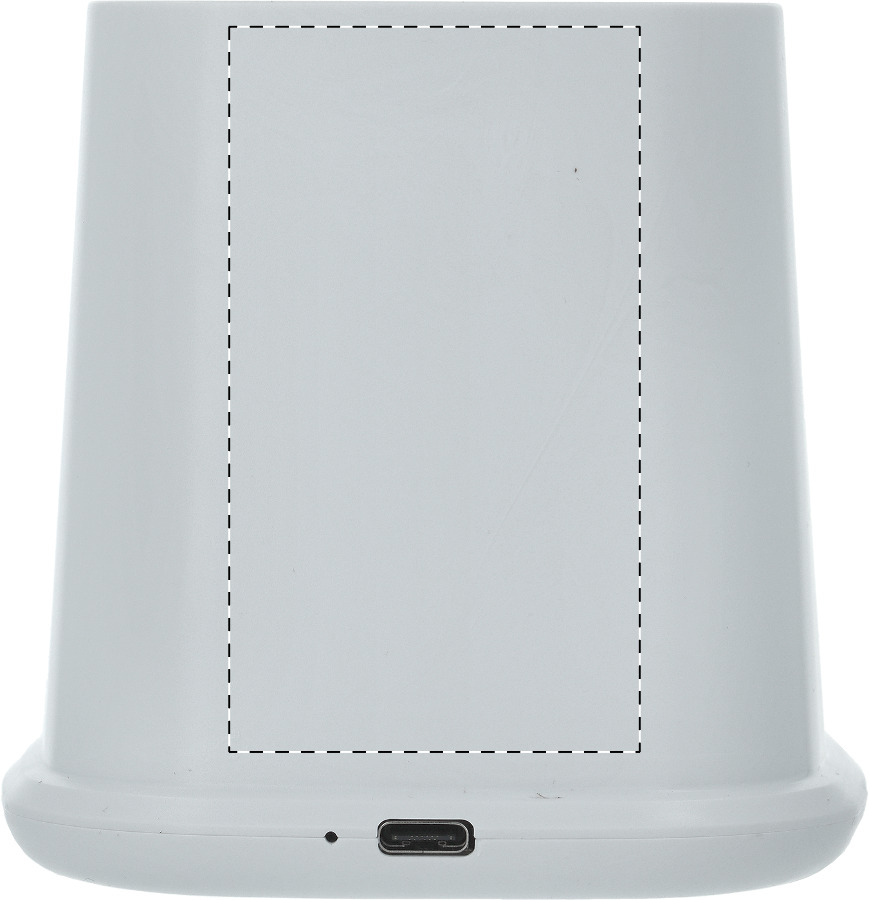Multifunktionaler Stifteköcher aus recyceltem ABS mit Handyhalter, eingebautem Wireless-Fast-Charger (10W), 1 USB und 1 USB-C Ladeport. Inkl. USB-Ladekabel.