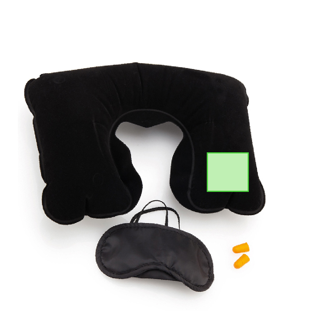 3-teiliges Reise-Set in weichem Wildleder-Etui in leuchtenden Farben. Enthält eine weiche und bequeme Mikrofaser-Maske in Schwarz mit farblich passendem Doppel-Gummiband für einen komfortablen Sitz, ein aufblasbares Nackenkissen aus Wildleder sowie Ohrenstöpsel aus angenehmem EVA-Material in Orange.