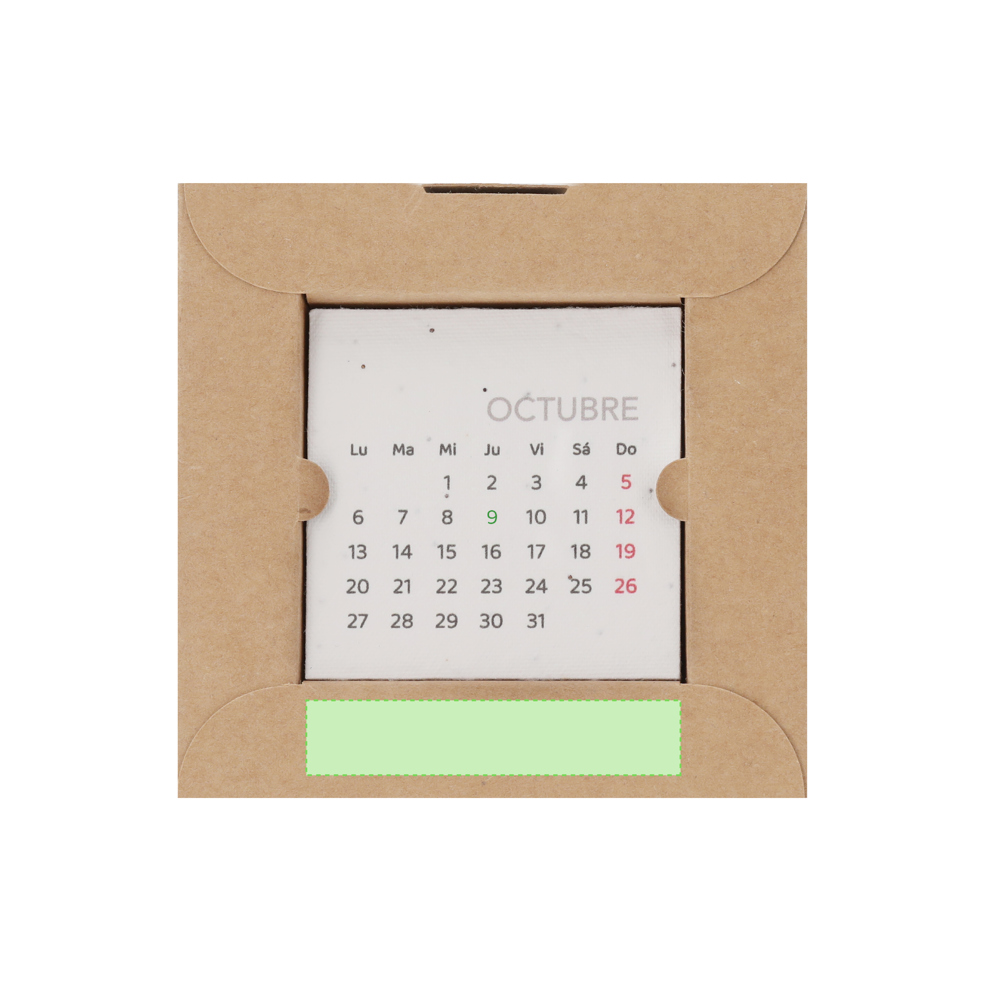 Pflanzbarer Kalender aus Samenpapier. Enthält 13 Blätter mit Petuniensamen in verschiedenen Farben, die nach ihrer Lebensdauer zu pflanzbarem Papier werden. Monatsdesign des aktuellen Jahres, mit nationalen Feiertagen in Rot und regionalen Feiertagen in Grün markiert. Präsentiert in einer Halterbox aus Karton.