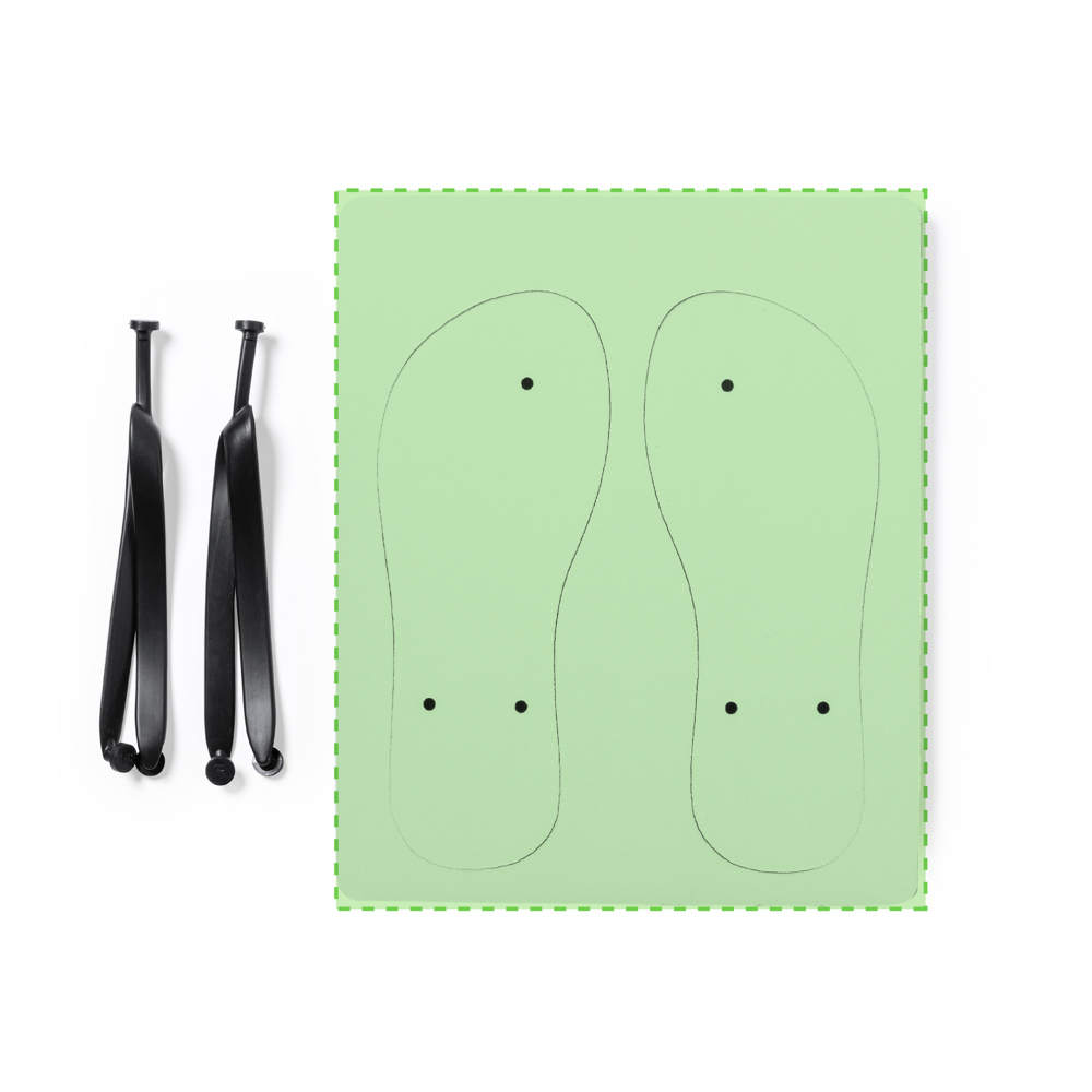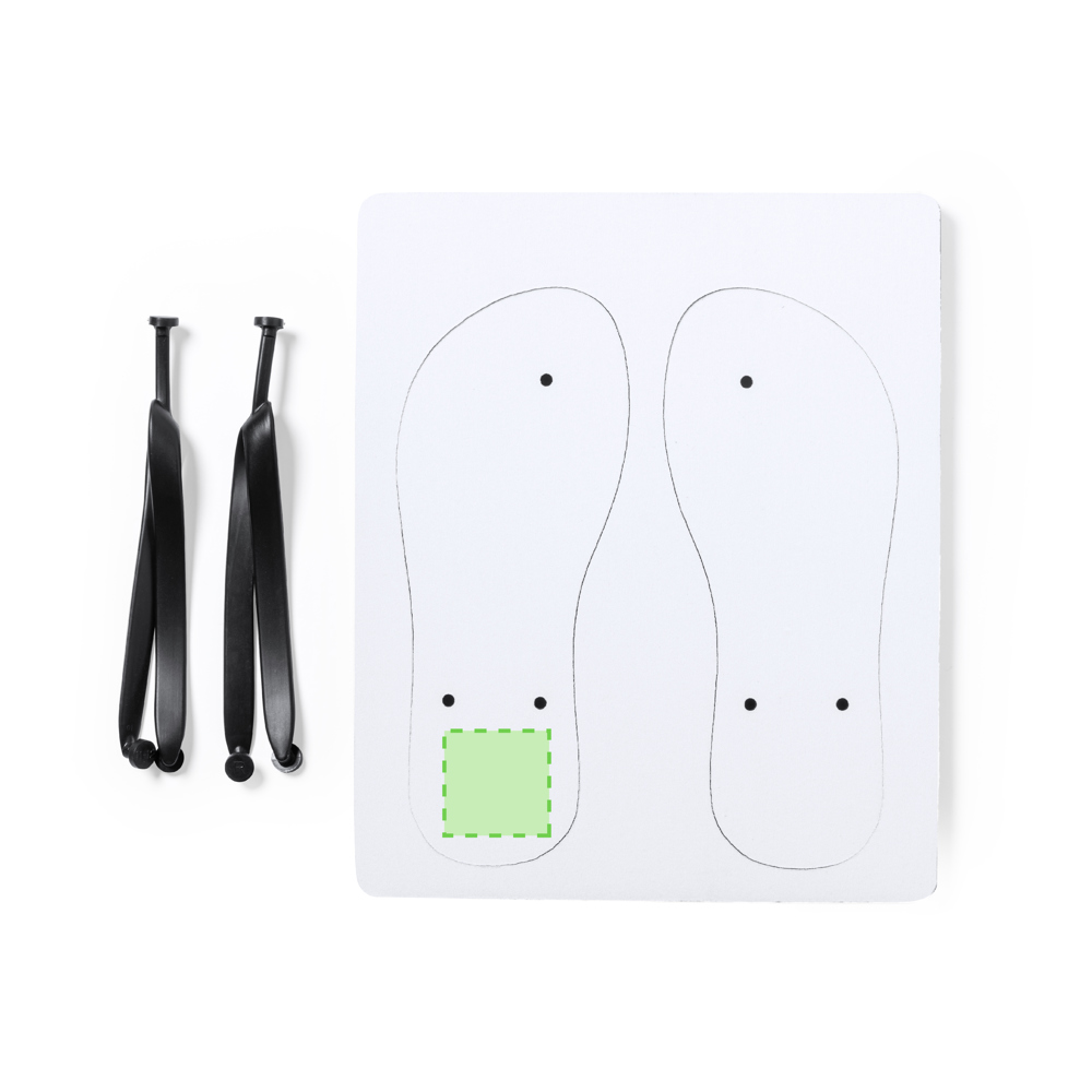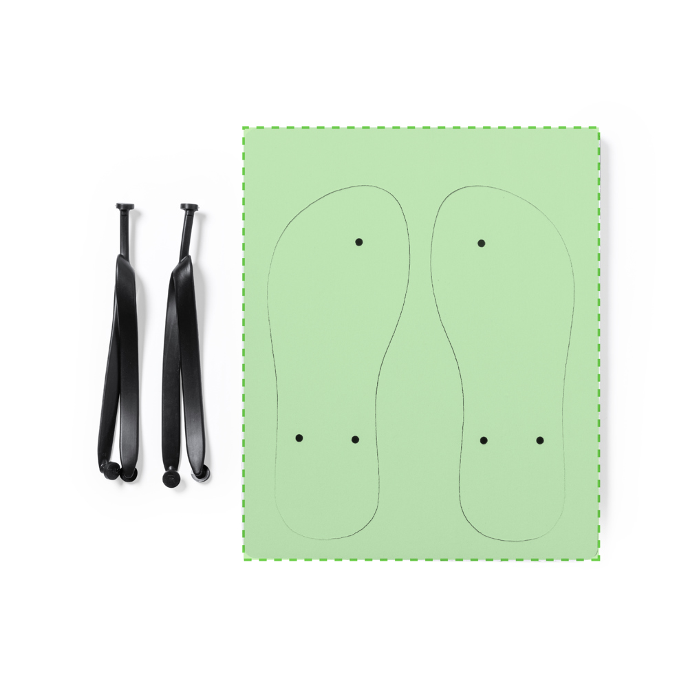 Paar Flip-Flops mit 100 % anpassbarer Sohle und speziell für den Sublimationsdruck konzipiert. Mit widerstandsfähiger EVA-Sohle, schwarzen PVC-Riemen und in zwei Größen erhältlich: 36-38 und 42-44. Set inklusive gestanztem EVA-Panel zur individuellen Gestaltung.