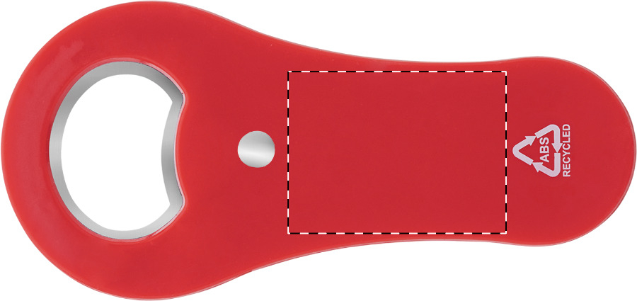 Flaschenöffner aus recyceltem ABS-Kunststoff mit Kühlschrankmagnet.