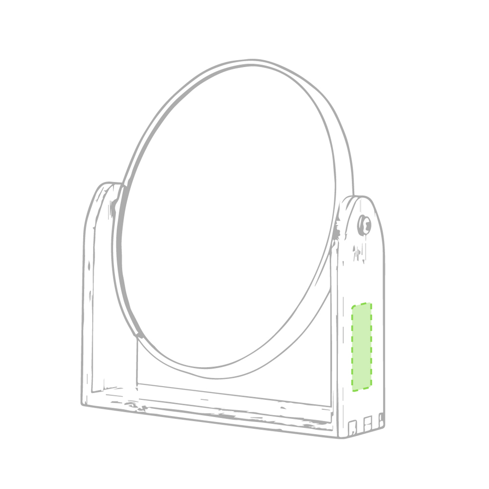 Faltbarer metallischer Spiegel mit Sublimationsfläche (nicht im Produkt integriert, ideal zum Drucken und späteren Aufkleben). Mit zwei Innenspiegeln: 1X und 2X-Vergrößerung.