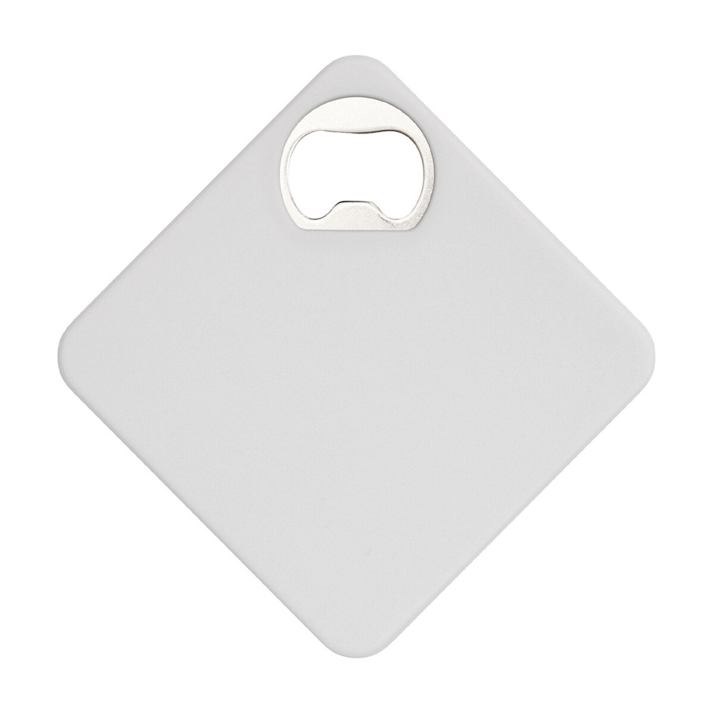 Origineller Untersetzer mit integriertem Metall-Flaschenöffner in einer Vielzahl von lebendigen Farben. Mit rutschfester Unterseite.
