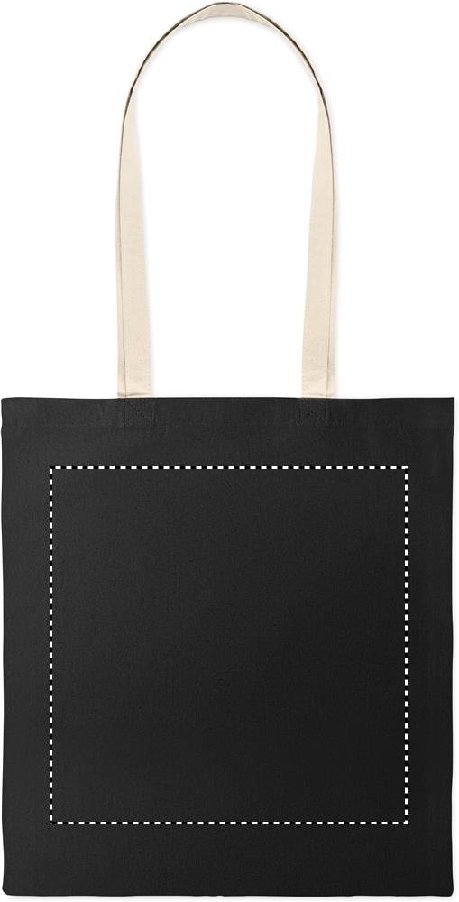 Tasche aus Baumwolle (70%) und Polyester (30%) (140 g/m²), mit 60 cm langen Henkeln. 380 x 420 mm